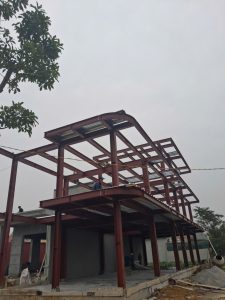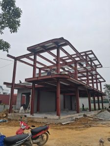 Phạm vi công việc bao gồm thiết kế bản vẽ kỹ thuật và shopdrawing, gia công cấu kiện thép tại xưởng, sơn chống gỉ – sơn hoàn thiện, vận chuyển đến công trình và lắp dựng hệ khung thép, dầm, kèo, xà gồ, mái và các hạng mục thép phụ trợ theo đúng hồ sơ thiết kế được phê duyệt.
